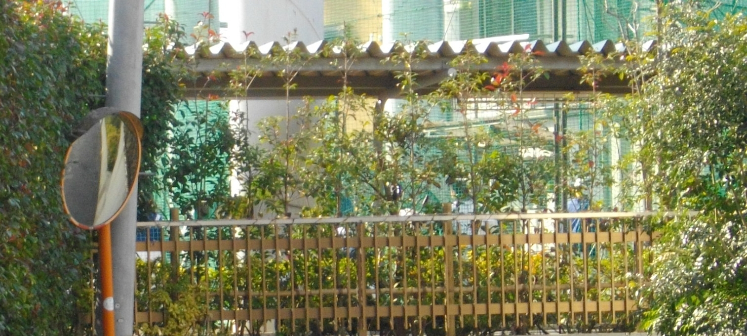 そのすぐ裏には多数の住宅が建ち並んでおります。そして、その境界はというと・・・。