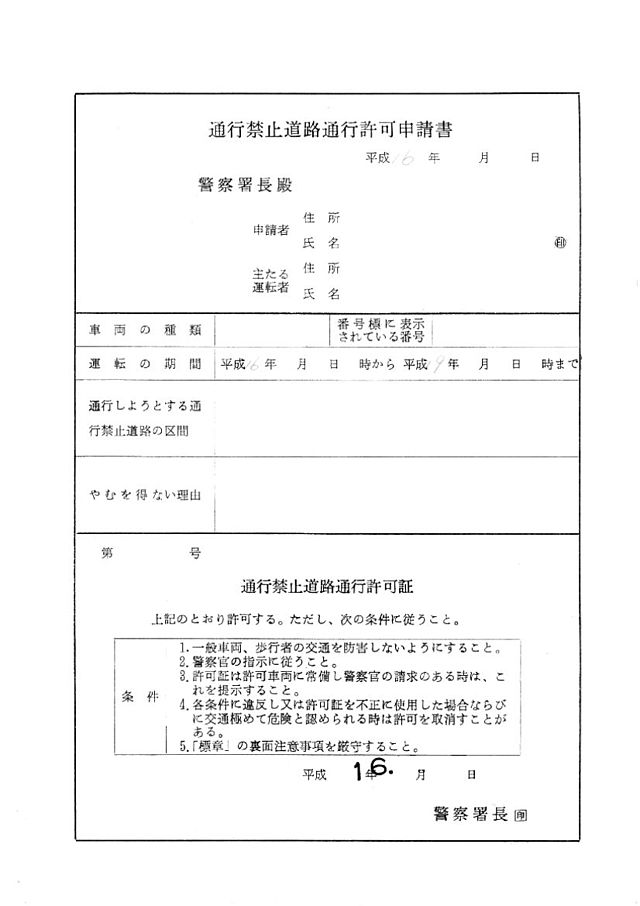 「やむを得ない理由」がなければ通行許可はおりない。 ・