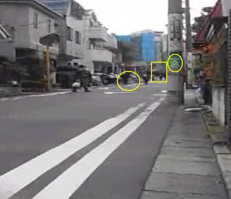 少し見づらいのですが、その後に道路を(画面左から右に)自転車で横断して登校する生徒さんの姿が写っています。さらに画面の奥、道路の先の方からこちらへ向かって徒歩で登校してくる生徒さんたちの姿も確認できると思います。この事からこ
