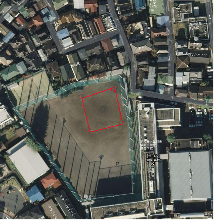 赤線で囲ったあたりが、野球部の練習で主に使っている部分です。